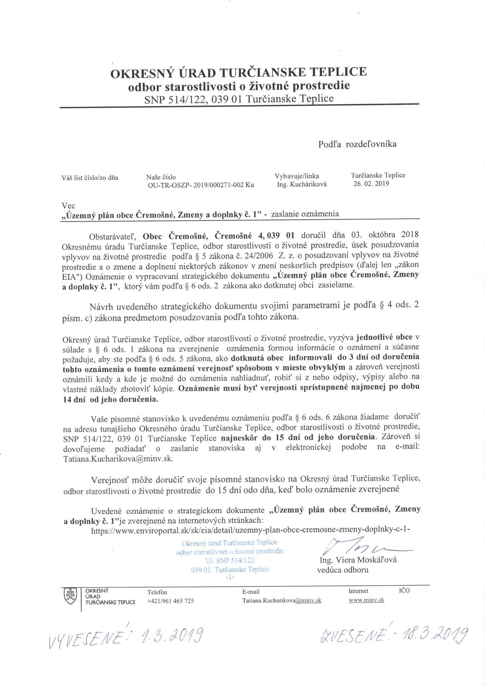 Verejné prerokovanie 17.7.2019 o 17,00 hod. na mestskom úrade TT
