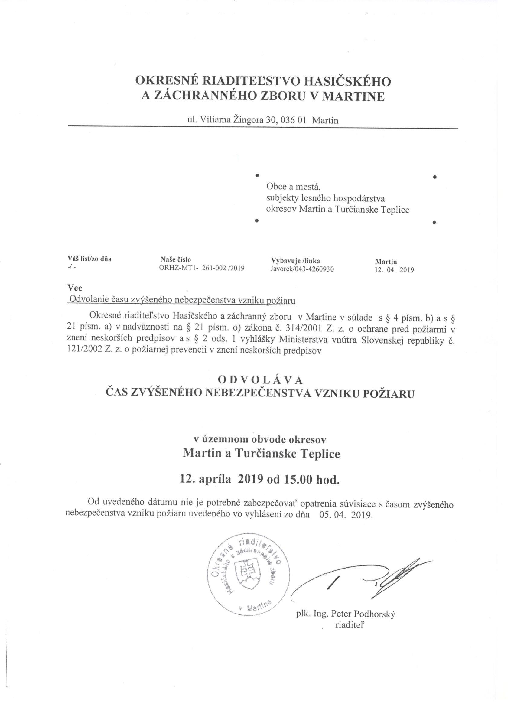 OD 5.4.2019 od 8,00 do odvolania